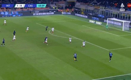 68'国米中路打出快攻,巴雷拉长传助劳塔罗·马丁内斯反越位破门,4比0!